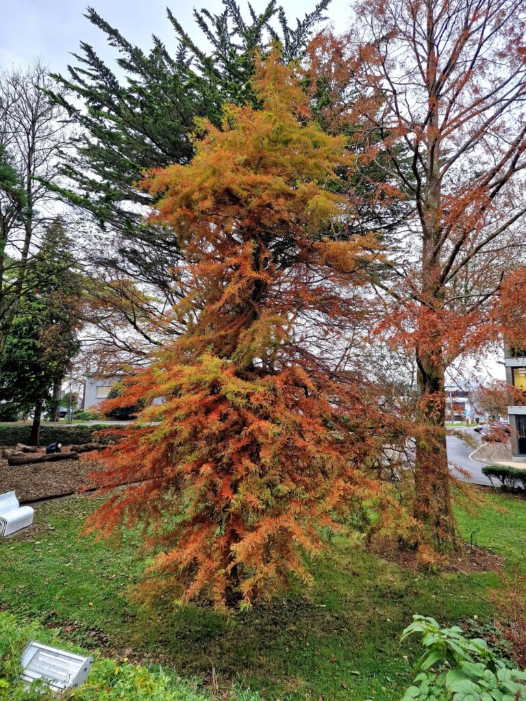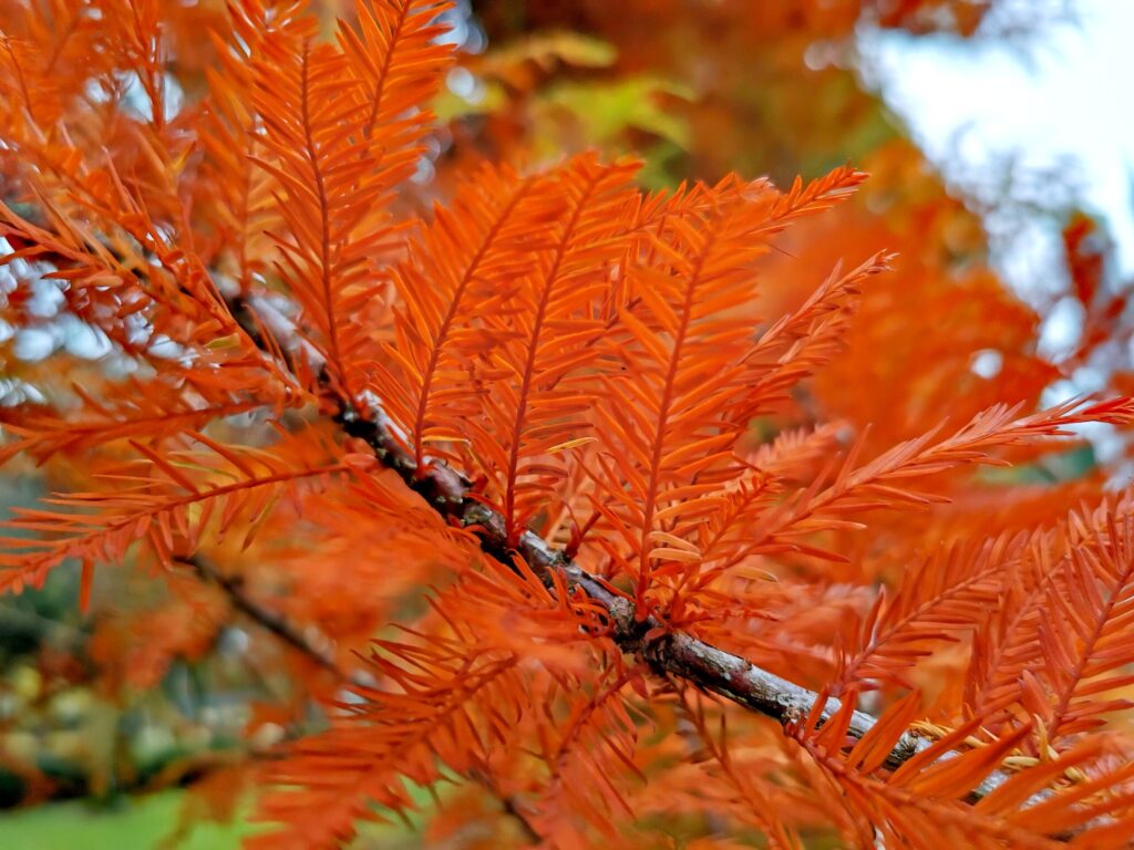 Bíonn na duilleoga líneach agus leacaithe. Bíonn siad cosúil le spíonlaigh buaircíneacha, seachas go mbíonn siad bog agus cleiteach. Bíonn dath glas nó buíghlas orthu san earrach agus sa samhradh, ach tagann dathanna suntasacha oráiste agus dearga orthu sula dtiteann siad sa bhfómhar. Cosúil le buaircíneacha eile, is cóin iad bláthanna an chrainn, agus is buaircíní iad na torthaí.